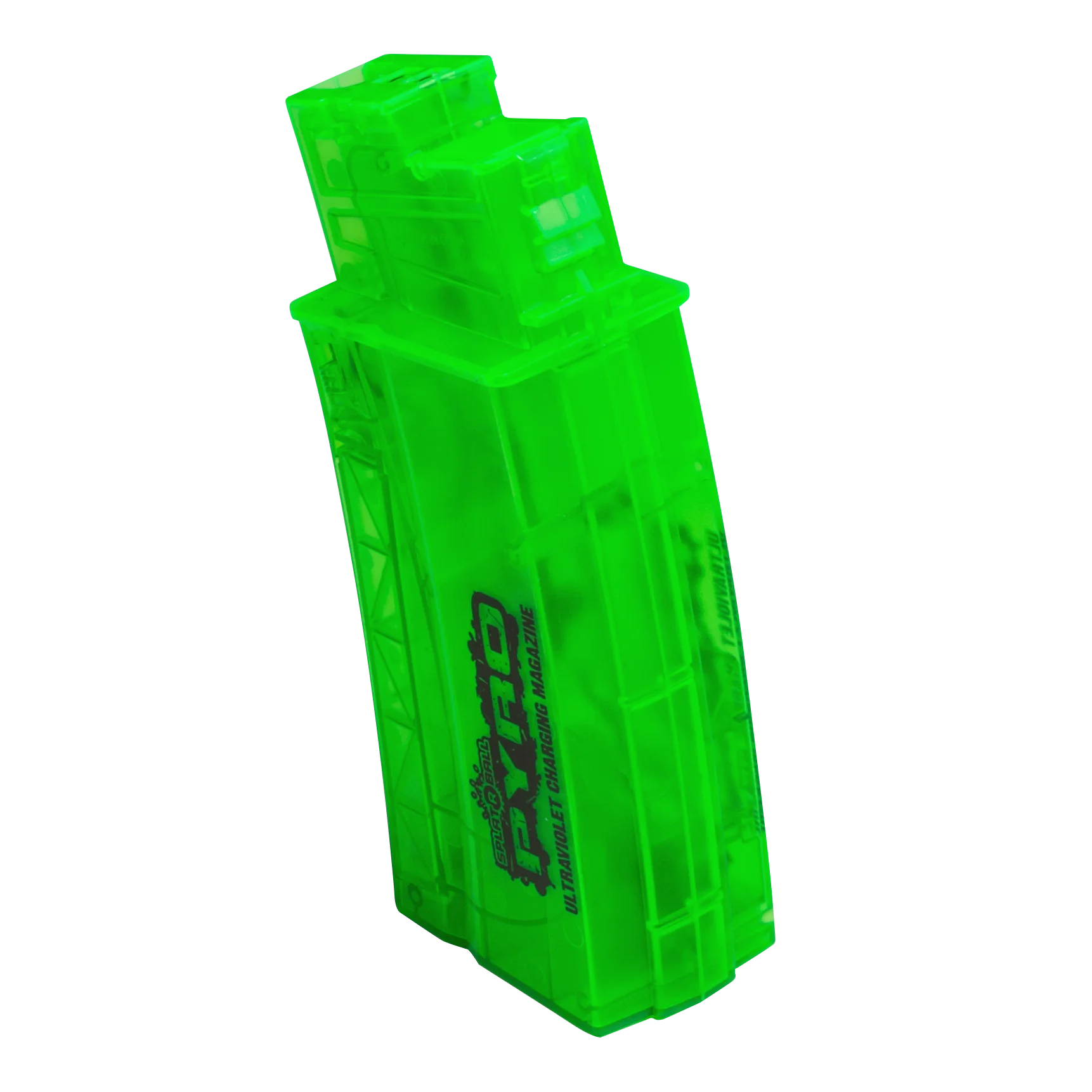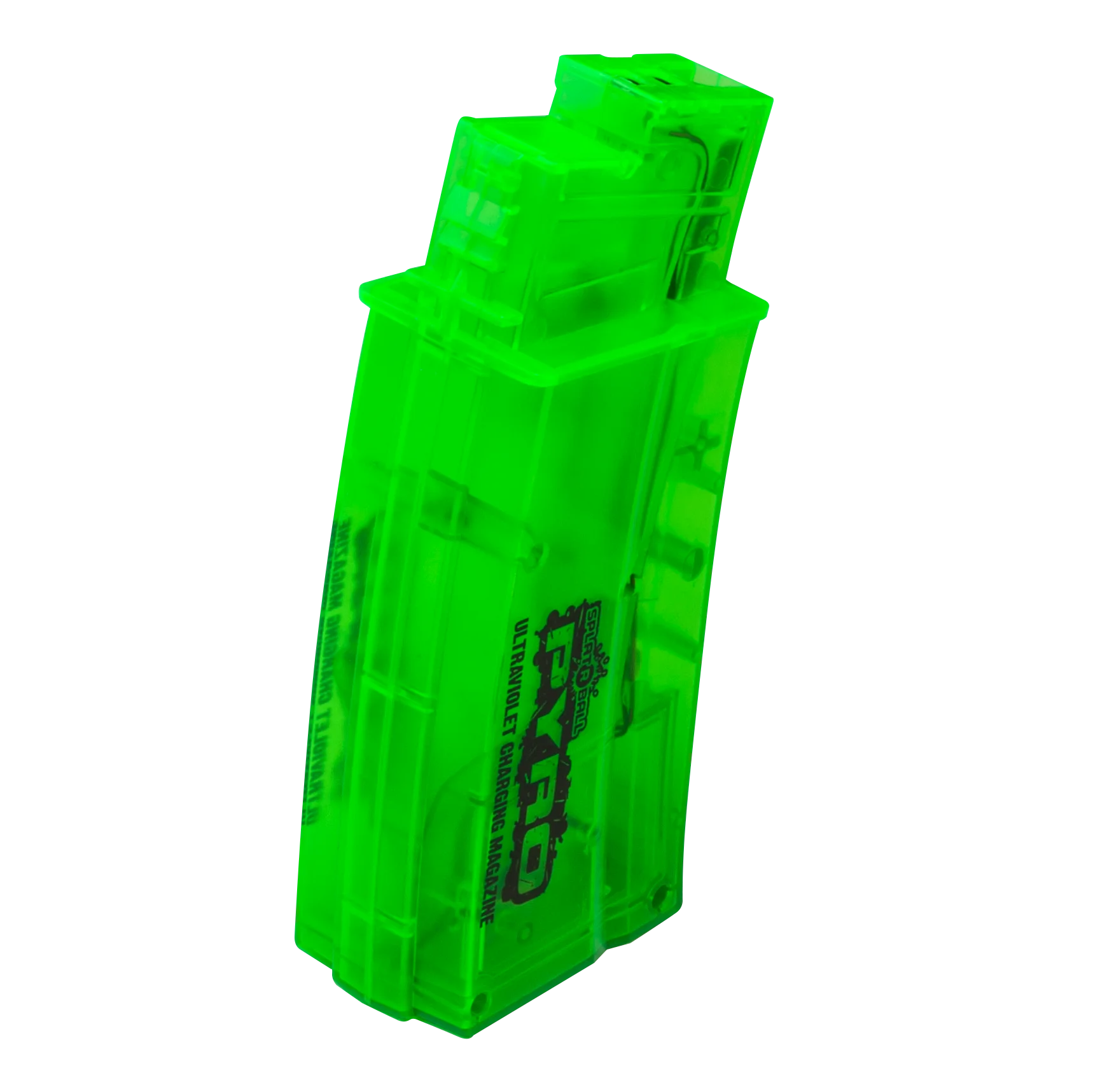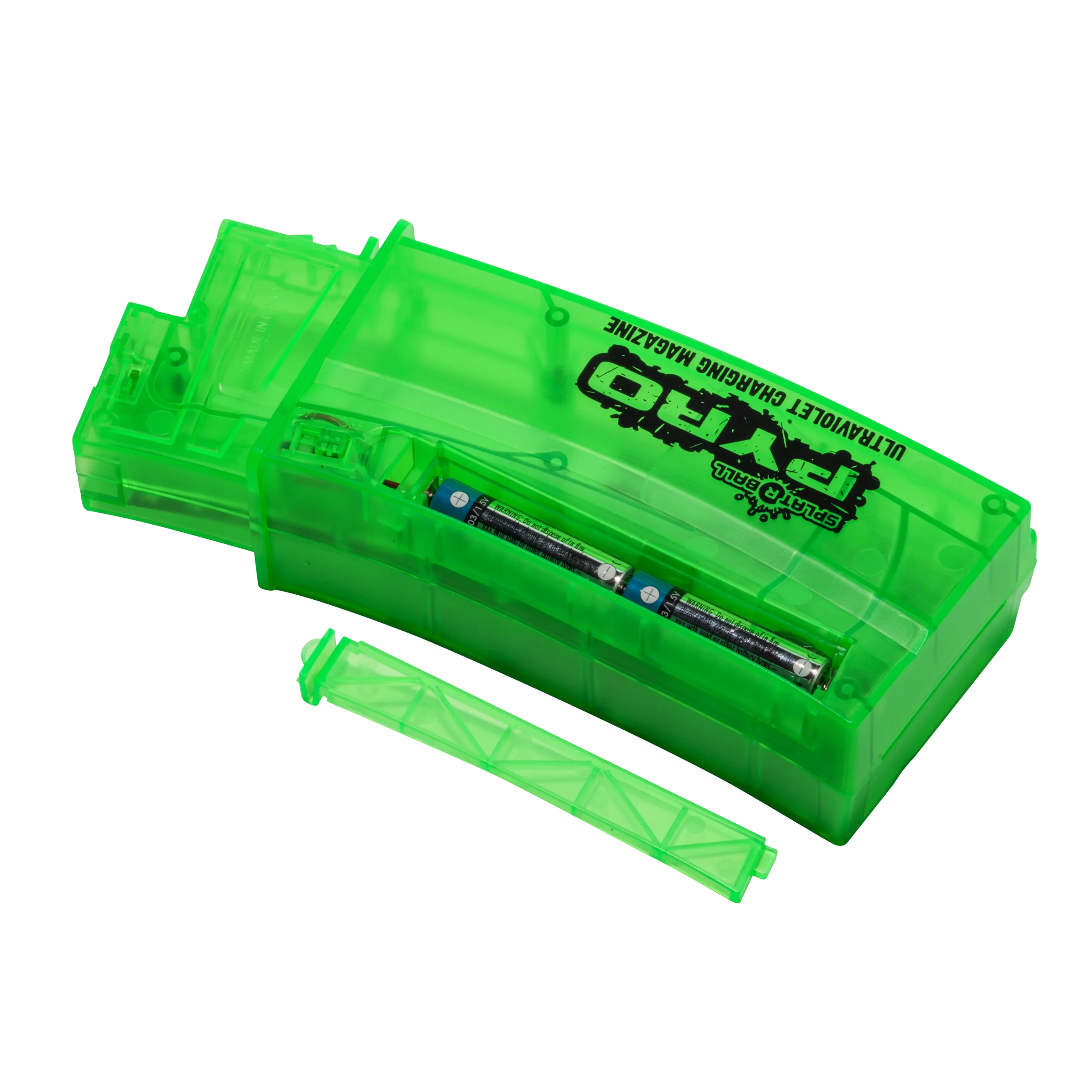 SplatRBall® Certified Pyro Easy Load Magazine that holds 550 rounds of SplatRBall® 7.5 mm water ball ammo. Keep one additional magazine ready on hand and loaded for quick shooting action. Keep one additional magazine ready on hand and loaded for quick shooting action. After you’re done shooting remove the magazine and insert your new mag for the next 550 rounds! This SplatRBall magazine has integrated LED’s and an ON/FF switch that will make your SplatRBall Pyro ammo glow-in-the-dark. Compatible with SplatRBall SRB400 and SRB1200 series models.