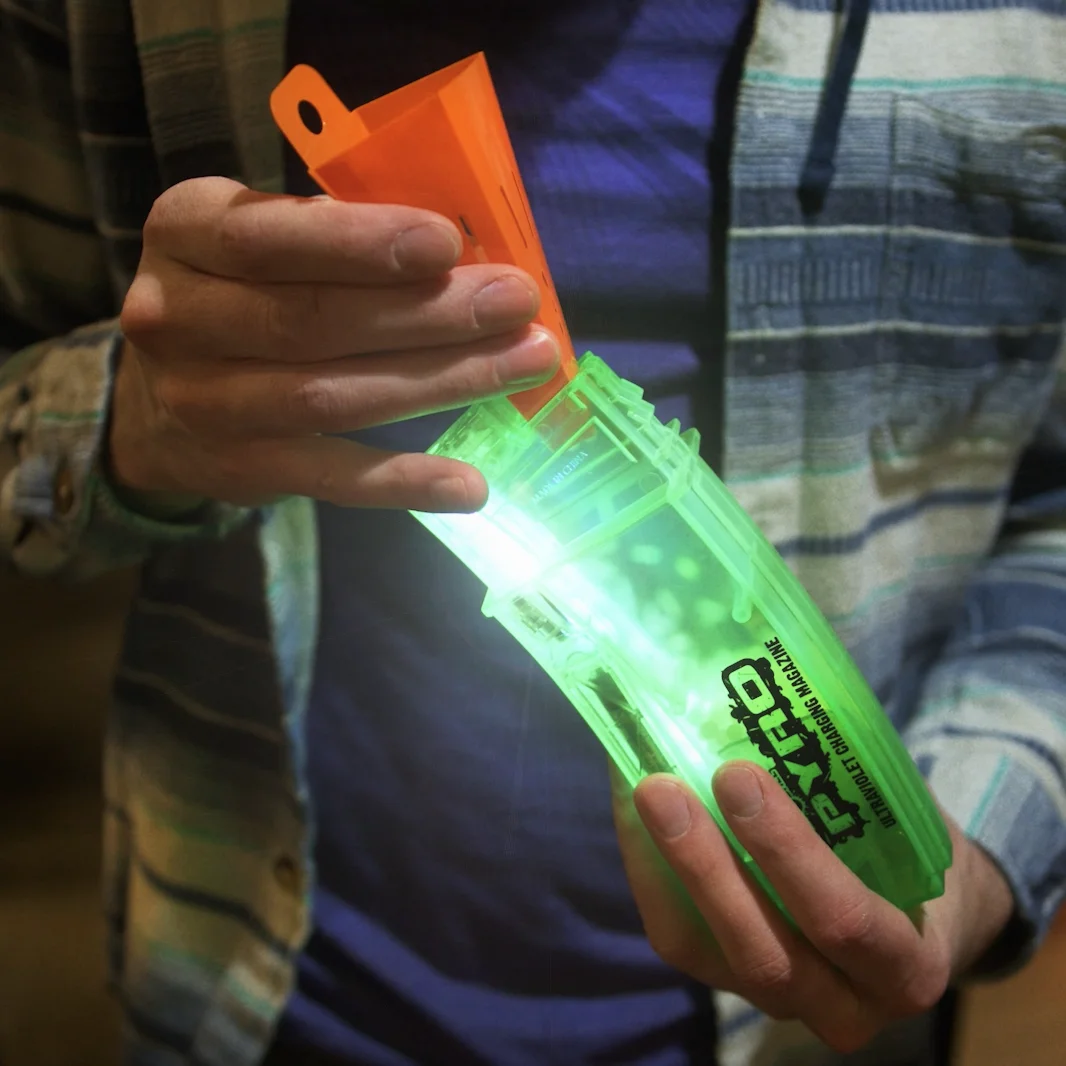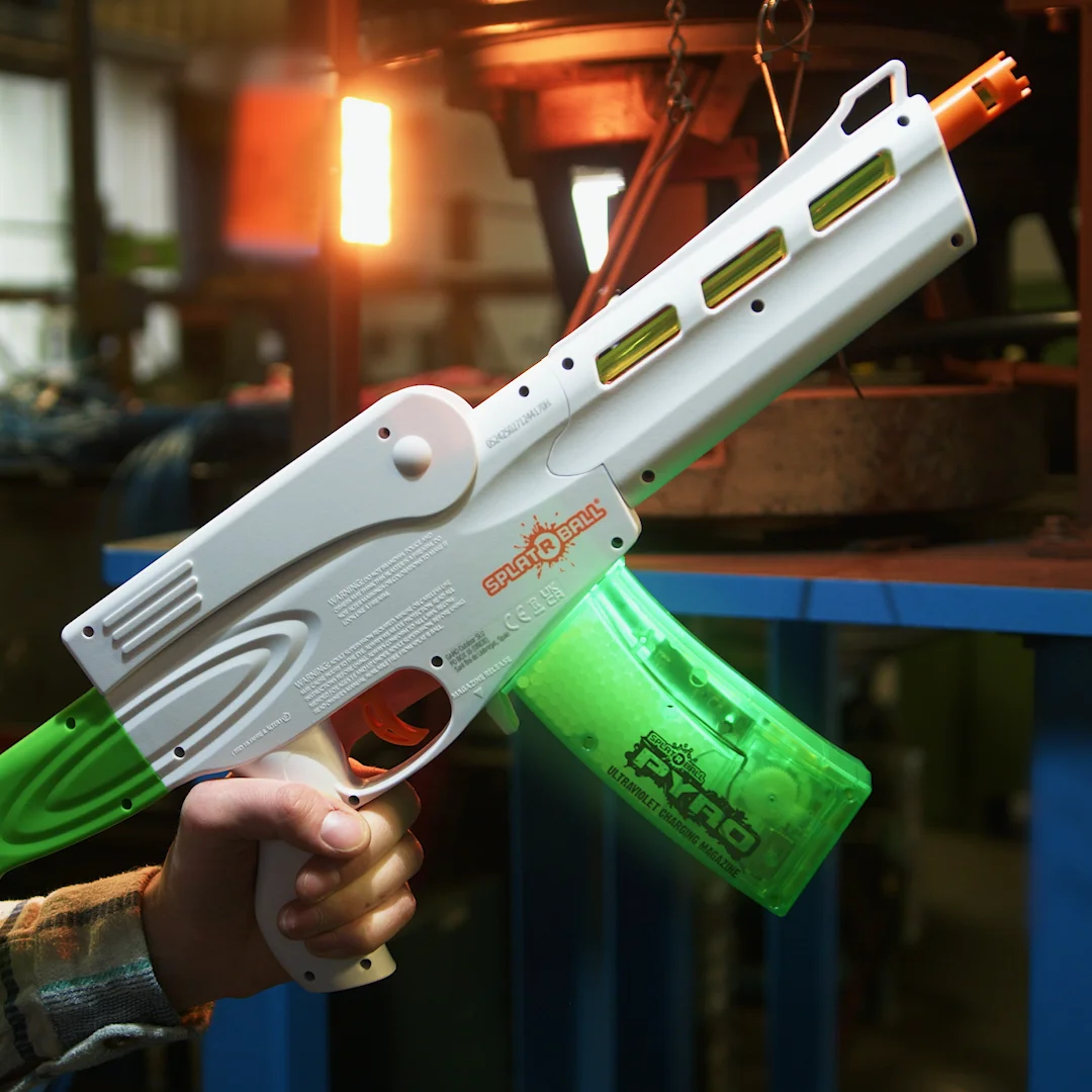 Charges SplatRBall PYRO ammo (glow-in-the-dark).